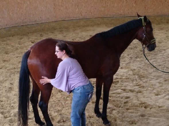 Ich arbeite pro Pferd mit dem Ziel, es schmerzfrei und mobil zu erhalten. Blockaden im Bewegungsablauf werden lokalisiert und gelöst. Dabei arbeite ich ausschließlich mit Weichteiltechniken und nutze Griffe aus der Osteopathie sowie Physiotherapie. Dies ermöglicht eine sehr sanfte Behandlung auf die sich die Pferde sehr gut einlassen können.